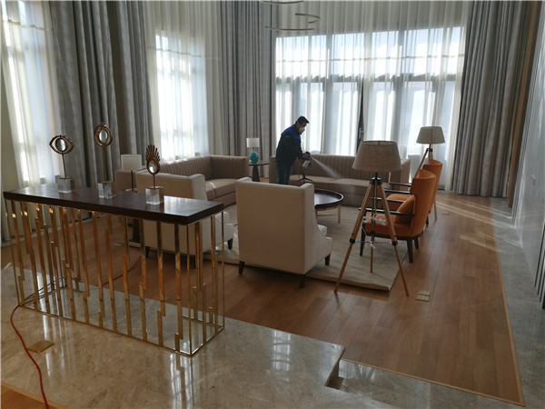 工程状态:经我公司专业细致的甲醛治理后,并通过第三方室内空气检测公司(CMA)的空气质量检测合格完成验收